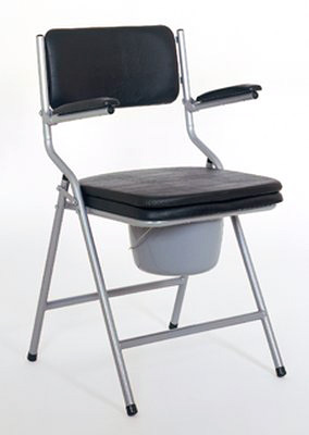 Toilettenstuhl faltbar Inklusive Topf. Hochklappbare, gepolsterte Armlehnen. gepolsterte Sitzbrille. Farbe schwarz/grau |